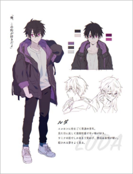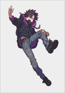 Style vestimentaire: T-shirt, jean et basket, souvent avec un manteau noir à l'intérieur violet ou un sweat-shirt noir et violet.